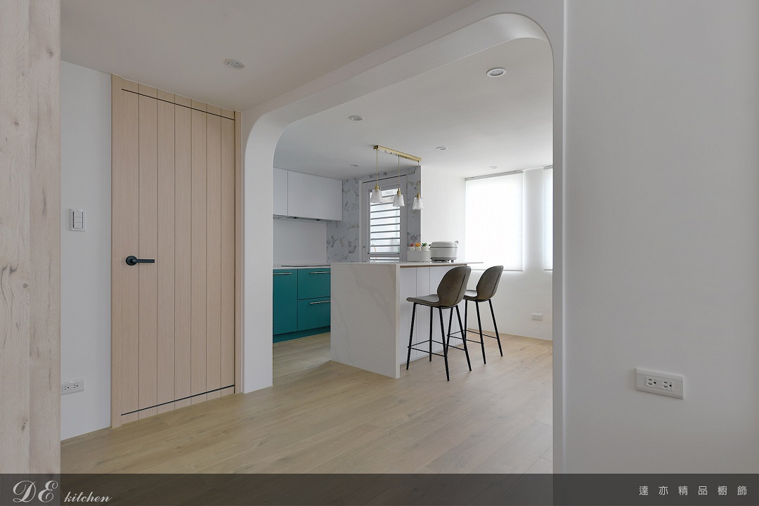 搭配弧形門洞設計,柔化線條並延展空間層次。