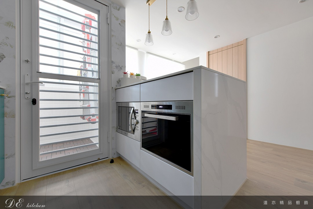 中島整合電器與吧檯功能,微波烤箱與炊飯器皆採嵌入式設計,